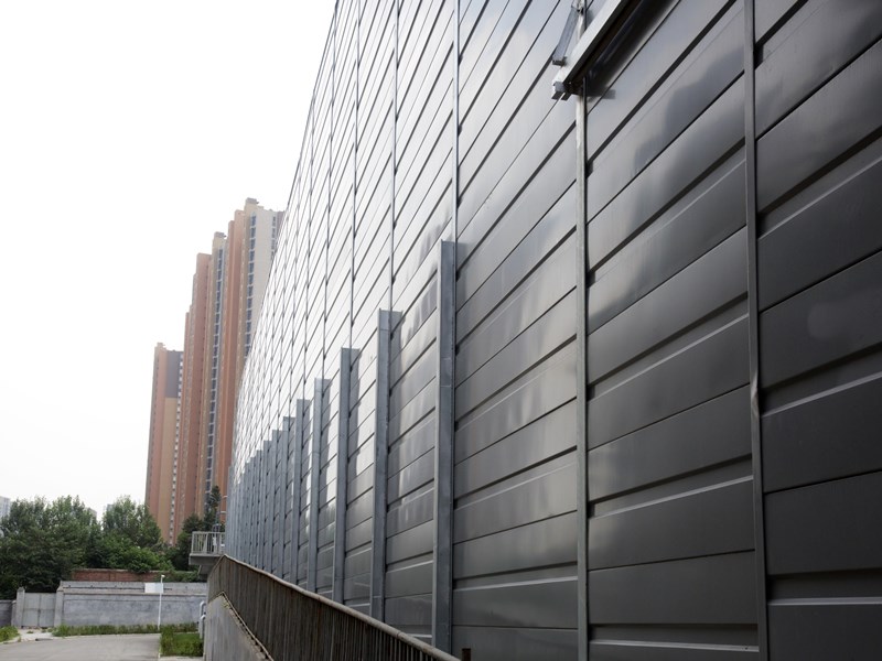 聲屏障立柱如果直接在圍墻頂部生根,考慮到風荷載要求,立柱高度一般不超過2.5米,間距2.5米左右較為適宜。圍墻聲屏障常用金屬鍍鋅板做基材,面板采用長圓形百葉孔,既美觀又具防水性,保證了雨雪天氣聲屏障的吸隔音性能不降低。