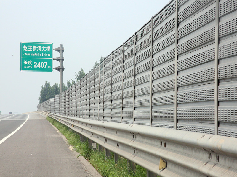 公路聲屏障組成:主要由鋼結構立柱和吸隔聲屏板兩部分組成,立柱是聲屏障的主要受力構件,它通過螺栓或焊接固定在道路防撞墻或軌道邊的預埋的鋼板上;吸隔聲板是主要的隔聲吸聲構件,它通過高強彈簧卡子將其固定在H型立柱槽內,形成公路聲屏障。